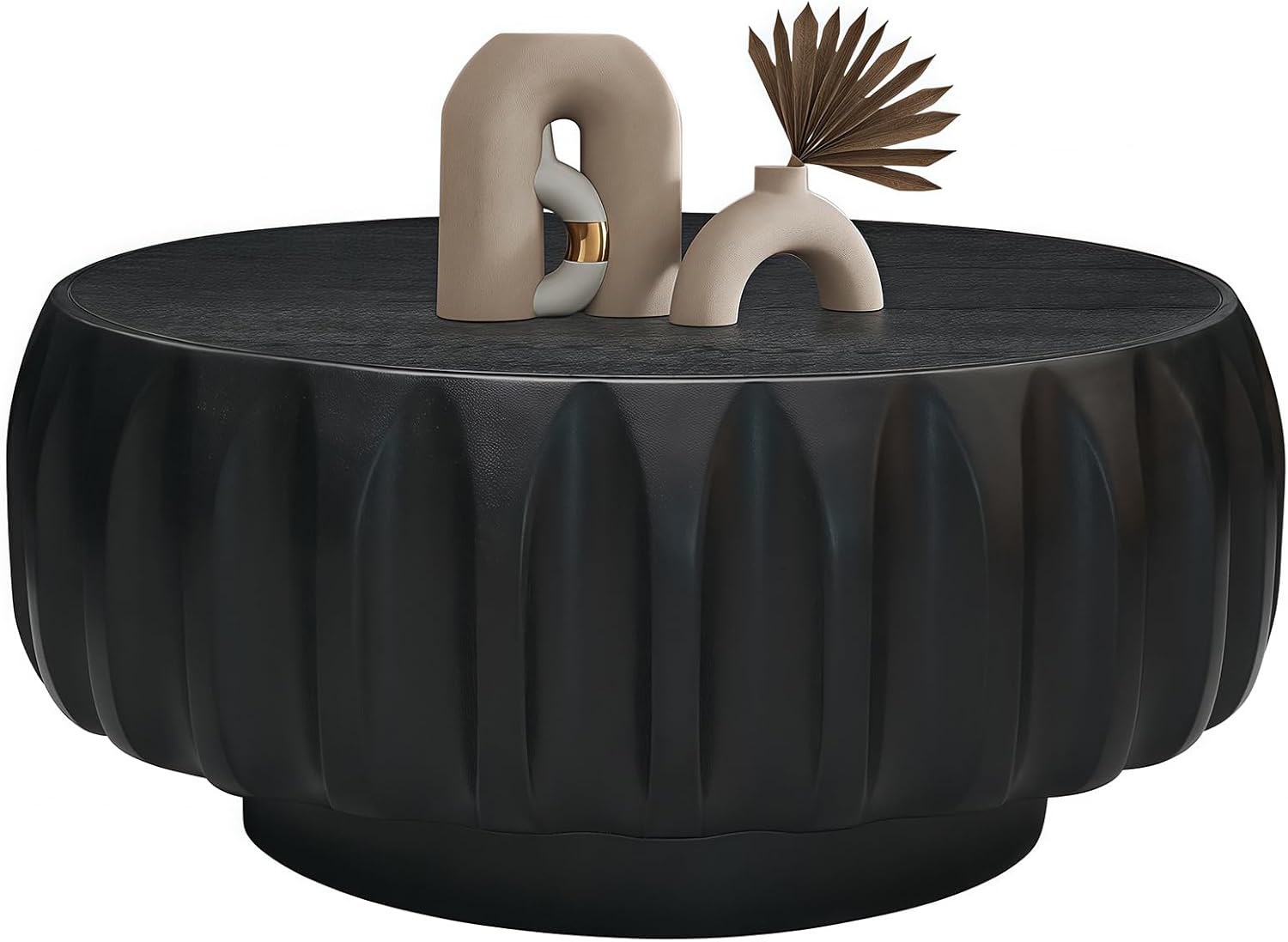 31.5" Round Coffee Table Drum Table Contemporary Wood Fluted Centry Table with Solid Wood Veneer for Living Room (Walnut)