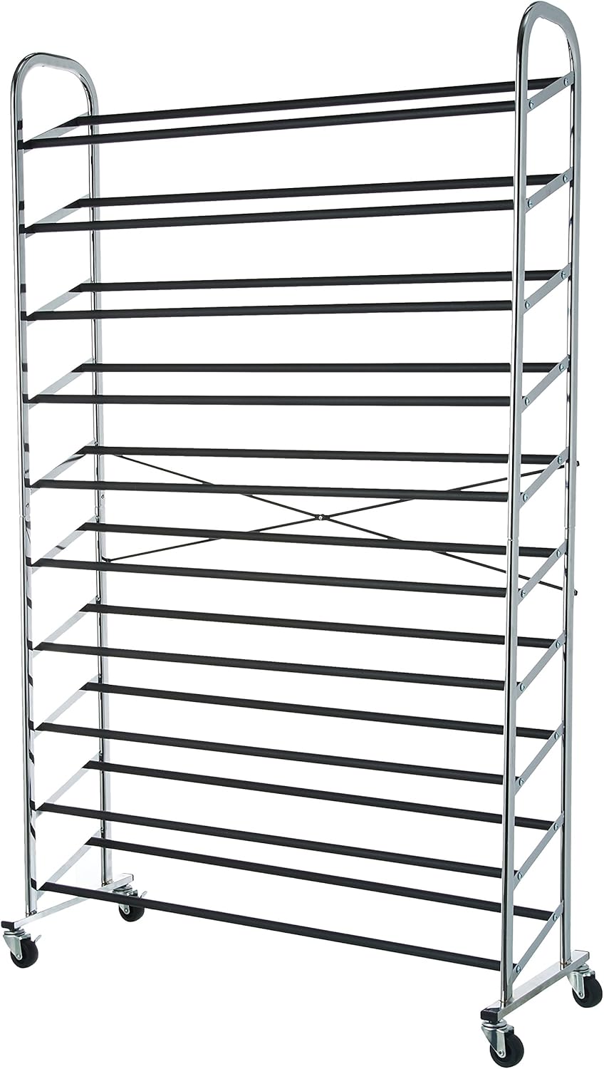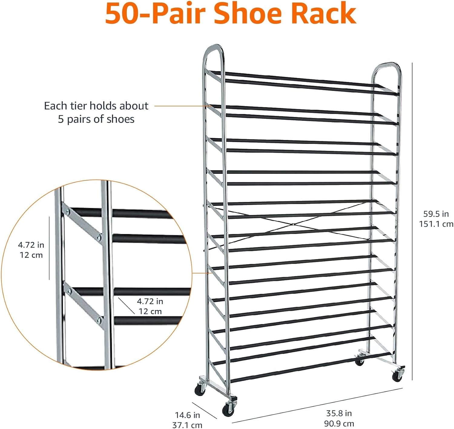 Amazon Basics 50-Pair Shoe Rack Organizer, Chrome, 35.8 x 14.6 x 59.5 inches