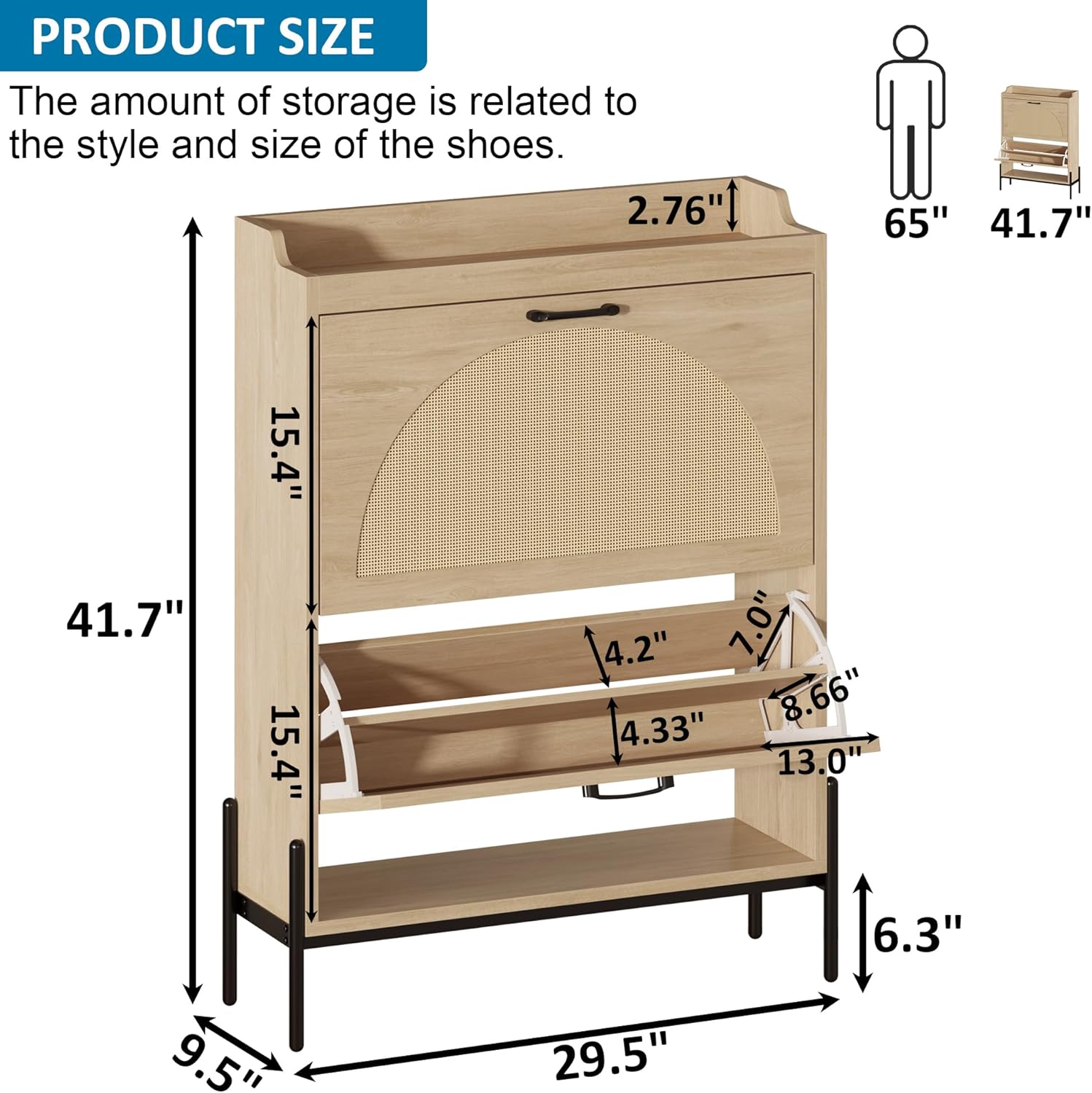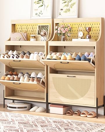 Gadroad Rattan Shoe Storage Cabinet with 2 Flip Drawers, Freestanding Shoe Organizer with Metal Legs for Entryway, Semi Circle Shoe Rack Cabinet (Natural)