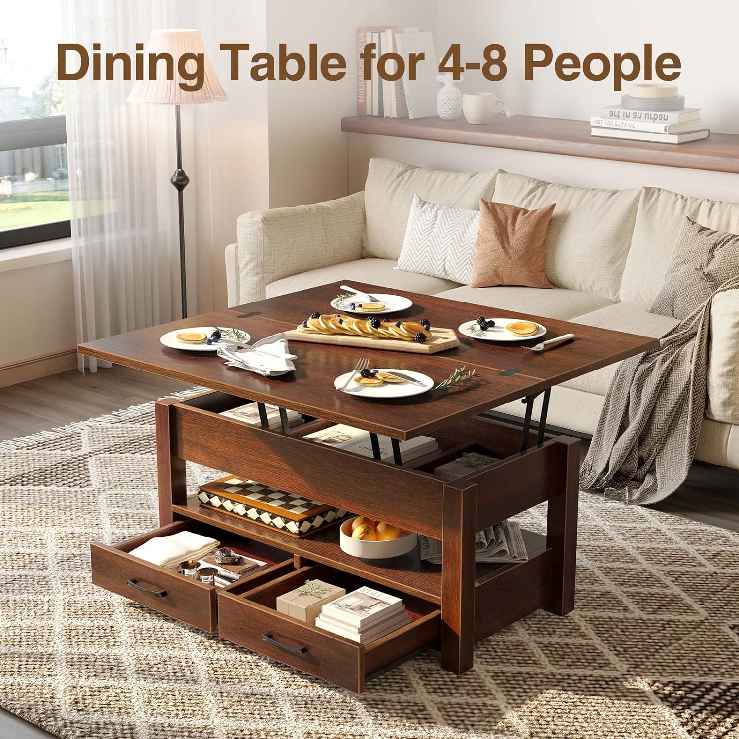 Rolanstar Coffee Table Lift Top, Multi-Function Convertible Coffee Table with Drawers and Hidden Compartment, Converts to Dining Table for Living Room, Home Office,Espresso