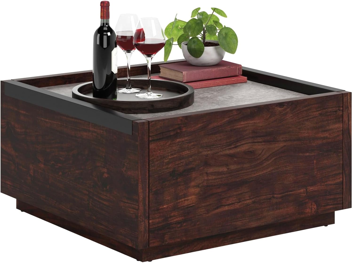 A mixed finish square coffee table is the dream of any fan of modern furniture. This Manhattan Gate® coffee table flips what you know about mixing materials and brings contemporary flair to any home. This modern coffee table is built with strong and lightweight panel construction that makes rearranging and reorganizing as easy as ever. This square coffee table with storage features two storage drawers with full extension slides that brings hidden storage to the living room for remotes, books, pillows, and more. The top surface space of this coffee table with drawers allows you to display photos of your family, your favorite candle, or books and other home décor. Finished on all sides for versatile placement anywhere in your home, this modern coffee table with storage will look polished from every angle. A Rich Walnut™ finish with Slate Gray™ accent will remind you what you love so much about modern, minimalist furniture.